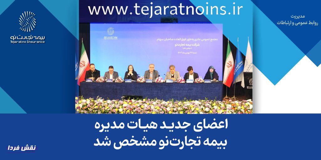 به گزارش نقش فردا به نقل از روابط عمومی بیمه تجارتنو؛ براساس رأیگیری انجام شده در این مجمع، پنج شرکت به عنوان اعضای اصلی هیات مدیره و دو شرکت به عنوان اعضای علیالبدل انتخاب شدند.