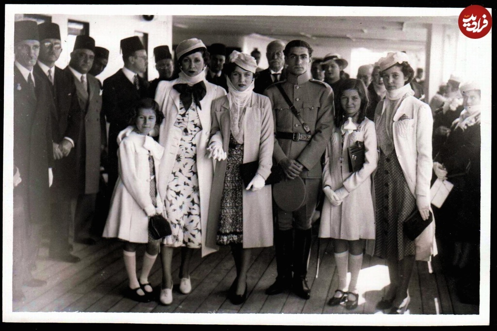 در ادامه تصویری کمتر دیده شده از محمدرضا پهلوی را در کنار ملکه نازلی، فوزیه و خواهران اش و در اسفند سال ۱۳۱۷ می‌بینید.