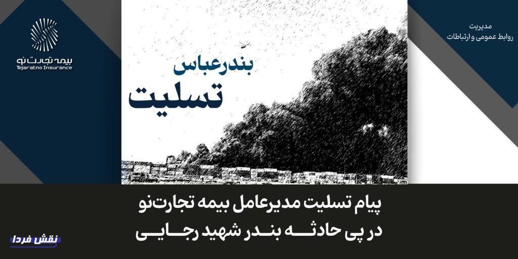 به گزارش نقش فردا؛ اینجانب از طرف خانواده بیمه تجارتنو ضمن ابراز همدردی صمیمانه، این مصیبت جانکاه را به خانوادههای داغدار و همه مردم شریف ایران تسلیت عرض گفته و از درگاه حضرت حق برای جانباختگان علو درجات، برای مجروحان شفای عاجل، و برای بازماندگان صبر جمیل و اجر جزیل مسئلت دارم.